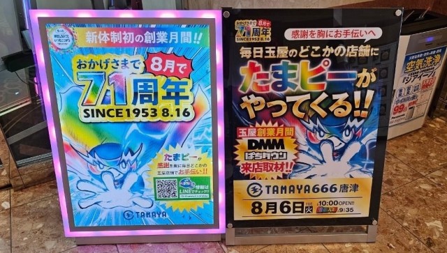 8月6日、玉屋×DMMぱちタウンのコラボ企画「たまピー来店取材」が『玉屋666唐津』にて実施された。本企画初参戦ということも相まってか、朝から多くのファンが集結。誰もが大きな期待感を抱いており、たまピーもまた緊張した様子が窺えたのが印象的だ。果たして同店は彼らの想いに応えることができたのか…さっそく詳細データとともに、店内の様子をお伝えしよう!