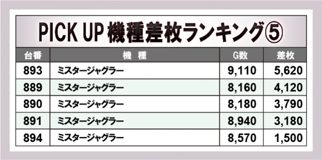上表に取り上げた5機種は、いずれも店内を包み込む熱気を形成した機種と言える。スマスロを中心に万枚OVERや大台突破台が多数生まれているわけだが、『マイジャグラーⅤ』『ミスタージャグラー』といった『ジャグラー』シリーズも負けず劣らず、+5,000枚OVER台を筆頭に好成績をマークし、相当な手応えを感じていたのは間違いないだろう。