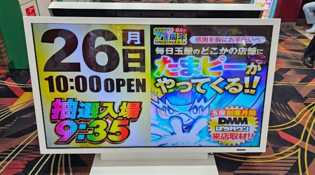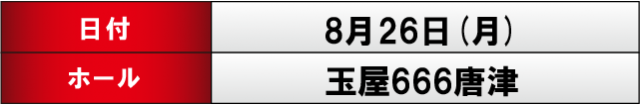 8月26日、『玉屋666唐津』にて玉屋×DMMぱちタウンのコラボ企画「たまピー来店取材」が実施された。今回が4度目の実施となったわけだが、これまで万枚OVERが発生するなどしっかり結果を残しているだけに、この日朝から駆けつけたファンは大きな期待感を抱いていたのが印象に残る。同店もまた、彼らの想いに応えようと意気込んでおり、開店前にして盛り上がる予感がしていた。さっそく以下から出玉詳細データとともに、当日の店内の様子に迫っていこう!