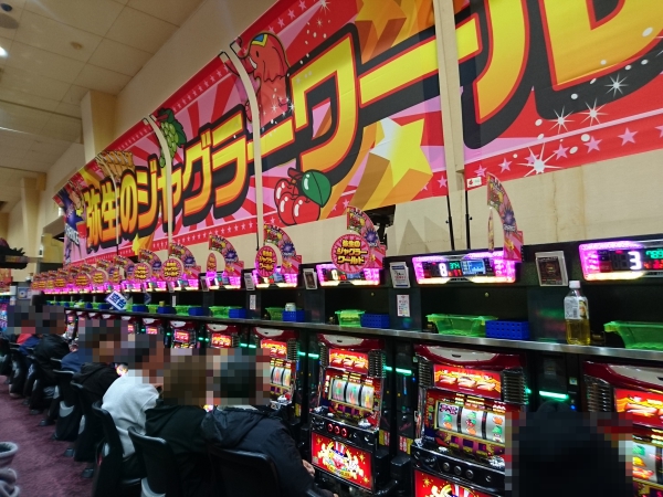 20円パチスロでは、「ニューアイムジャグラーEX」といったジャグラーシリーズがひときわ高稼働。笑顔のプレイヤーが多く、心から楽しめている様子もうかがえた。
