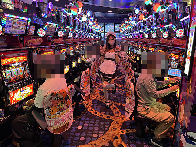 「マイジャグラーⅤ」や「アイムジャグラーEX」などのジャグラーシリーズが人気となっており、あちこちが盛況!
