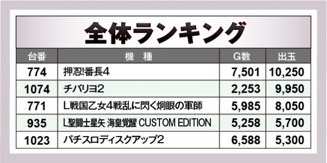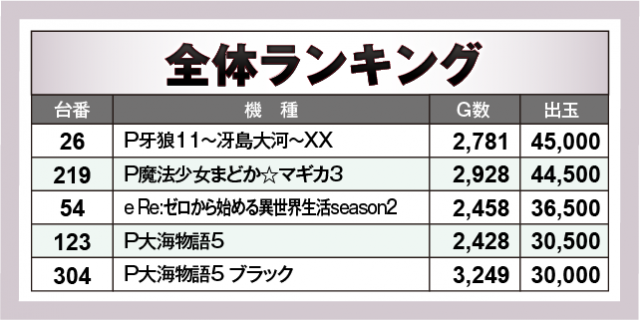 ※出玉数順に掲載しています