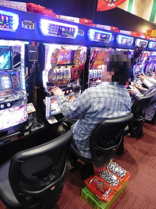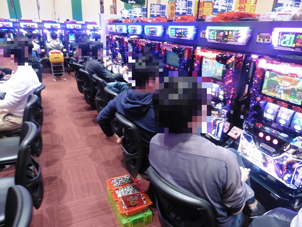 まずは20円スロットコーナーの様子をうかがってみると満席状態で、この日一番の盛り上がりを見せていたのは「バジリスク~甲賀忍法帖~絆」。機種の性能を最大限に発揮しているプレイヤーを多数確認。プレイヤーの表情は笑顔であふれていた。