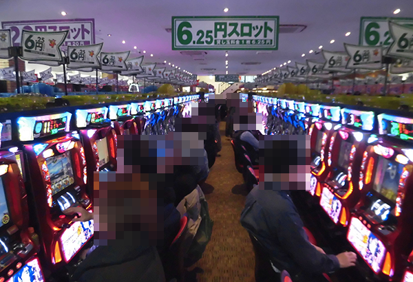 2.5円パチスロの盛り上がりも大きく、雰囲気も明るい。
