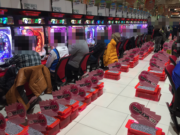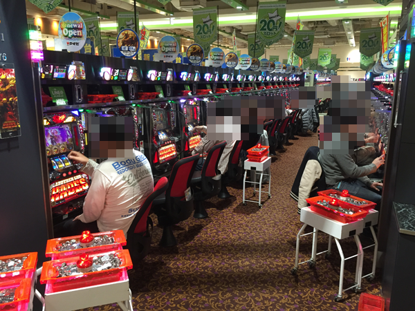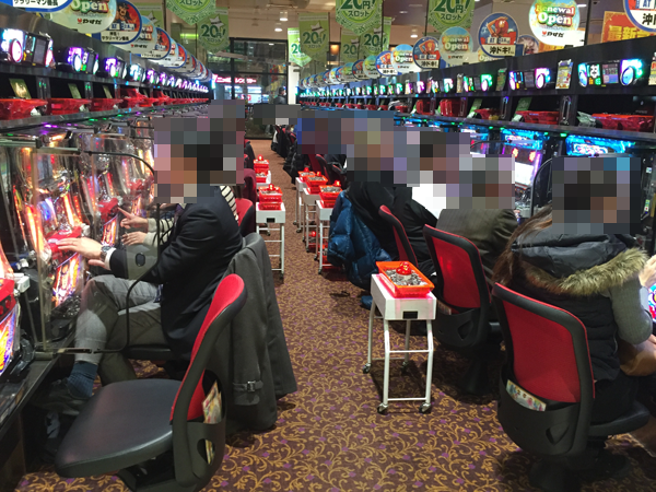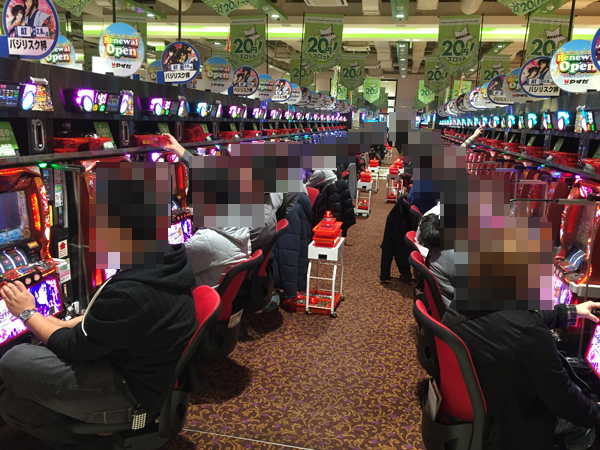 目的としていたボーナスタイプ以外にも「バジリスク〜甲賀忍法帖〜絆」といったAT・ART機やパチンココーナーなど、ホール全体が大盛況。
