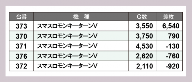 ※差枚数順に掲載しています