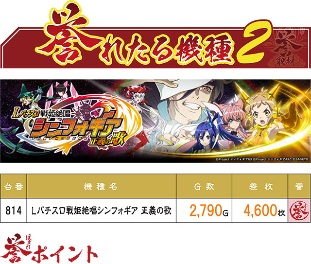 『Lパチスロ戦姫絶唱シンフォギア 正義の歌』も814番台だけがプラスという結果に。しかし残りの2台もほぼプラマイ0ラインのわずかなマイナス値。しっかり回されていたら全台プラスを狙えたかも…!?