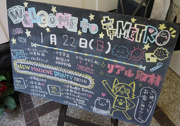 また、これまでの取材時にみられた手書きの看板も健在。新台の情報はもちろんのこと、かわいらしいイラストやレイアウトにもセンスが光っていた。