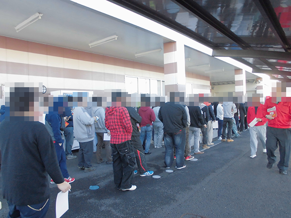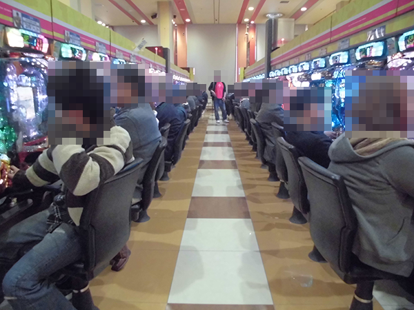取材日は、朝イチから約100名のプレイヤーが来店。常連と思われるプレイヤー同士が笑顔で話をしている姿からは、ホールに対する信頼の大きさもうかがえた。