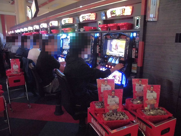 そのほかに、ジャグラーシリーズや「パチスロ北斗の拳 修羅の国篇」などにも、楽しそうな光景が広がっていた。