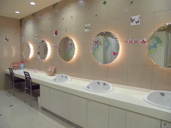 広々としたホール内は、遊技台の周辺からレストスペースにいたるまで、清潔な印象。キレイな装飾で彩られていた女性用のトイレには、化粧台も完備されているため、女性のプレイヤーも気持ちよく遊技をおこなえそうだ。