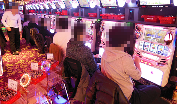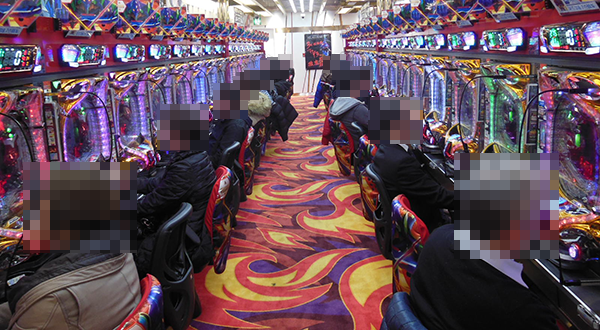 夕方頃の4円パチンコでは、新台の「CRぱちんこ GANTZ」と「CR戦国乙女〜花〜」が満席。笑顔で遊技をおこなっているプレイヤーの姿からは、楽しい時間を過ごせていることもうかがえた。