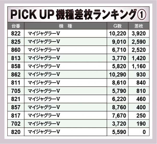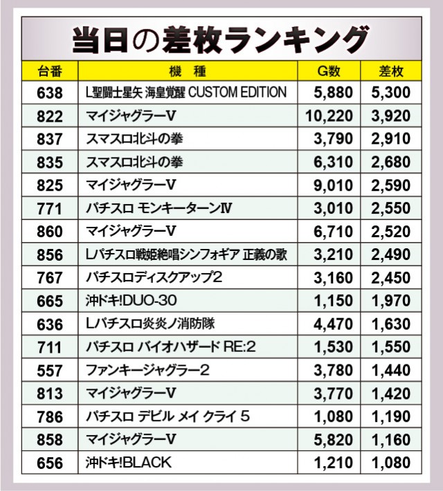 ※差枚数順に掲載しています。