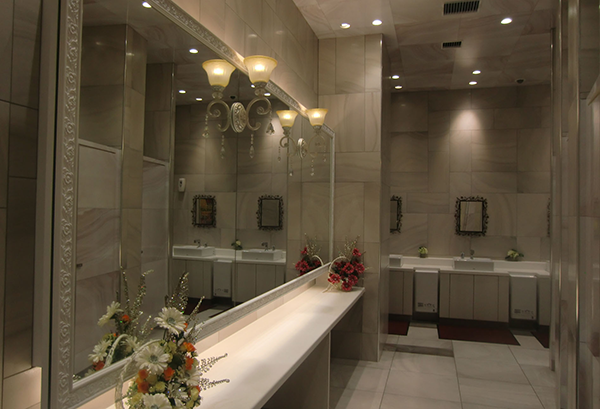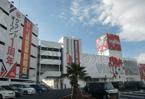 トイレにまで施されているオシャレな内装など、随所にこだわりがうかがえる「ベニス栗東店」。このホールの多彩な魅力をあますところなく体感した。