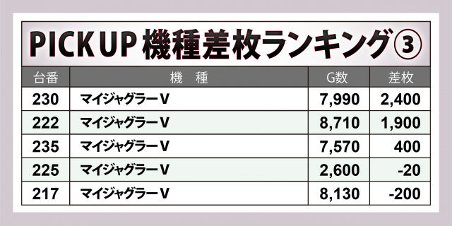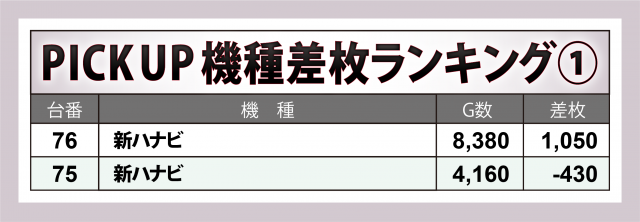 下で挙げる3機種の他では、『沖ドキ!BLACK』が+3,000枚超、『SLOTバジリスク~甲賀忍法帖~絆2』の+2,200枚弱と、新旧取り合わせたラインナップに好調台が生まれた。