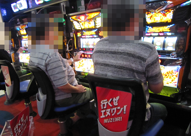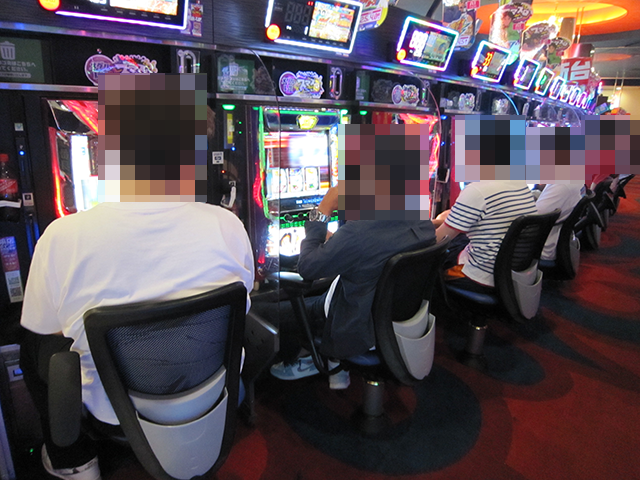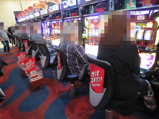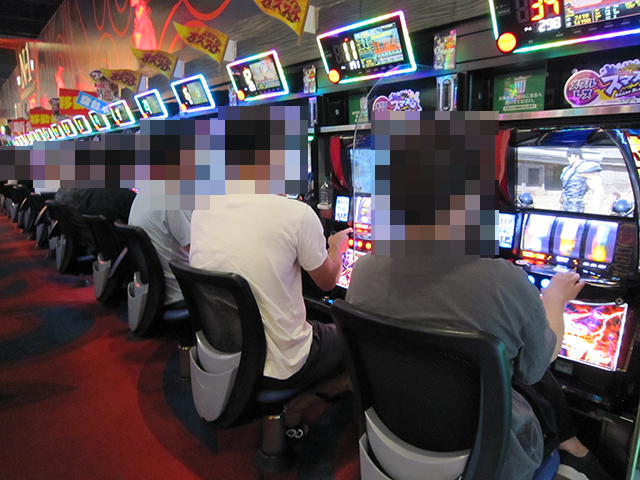 じっくりと遊技を楽している姿をカメラにおさめるべく、パチスロからみていった。