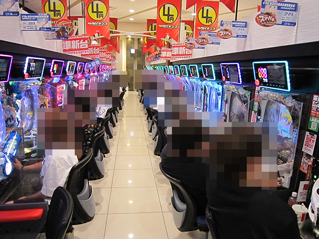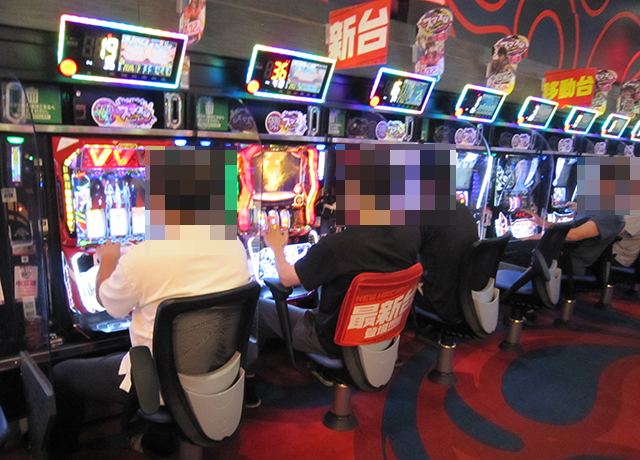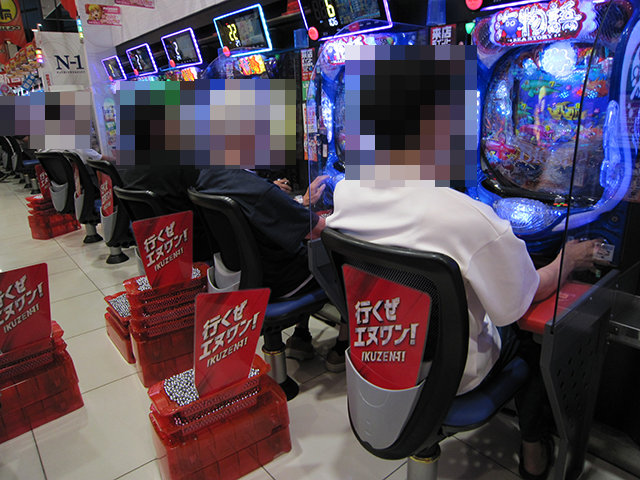 「P大海物語4スペシャルBLACK」に6箱以上、「P大海物語5」には5箱以上の持ち玉を使い、うれしそうに遊技をおこなう姿があった。