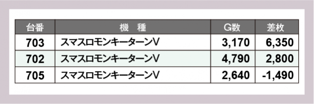 ※差枚数順に掲載しています