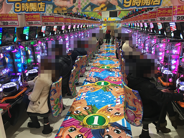 4円パチンコの「CR戦国乙女〜花〜」などで遊技をはじめるプレイヤーも多く、朝イチからホール内の活気が大きくなっていた。