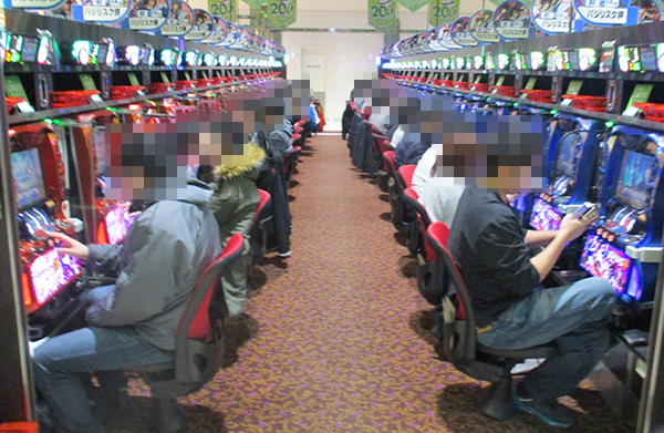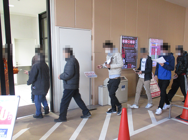 初日となるこの日の朝イチには、パチンコ・パチスロをあわせて50名以上のプレイヤーが集合。機種に関して、楽しげに話す姿も印象に残っている。