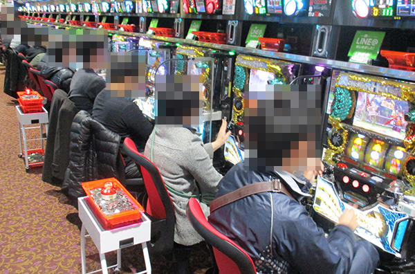 「パチスロ モンスターハンター 月下雷鳴」や「沖ドキ!」も活気づいており、明るい表情で遊技をする姿が印象に残っている。