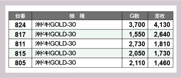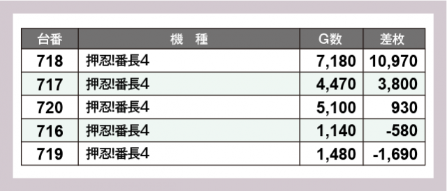 ※差枚数順に掲載しています