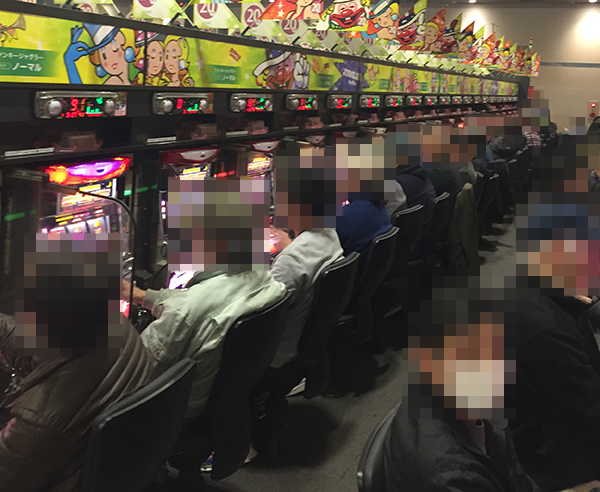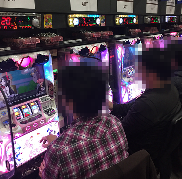 15時頃の20円パチスロをみると、「バジリスク~甲賀忍法帖~絆」や「SLOT魔法少女まどか☆マギカ2」が盛況。