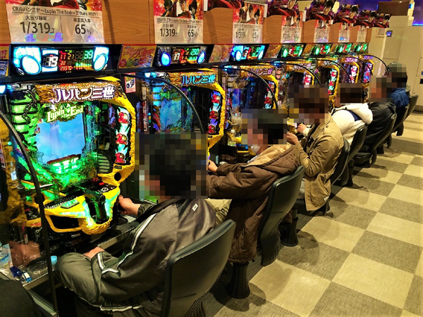 4円パチンコでは、「CRルパン三世~Lupin The End~」が大盛況。稼動率は9割を超え、空台を見つけるのが大変なほどの人気を見せていた。