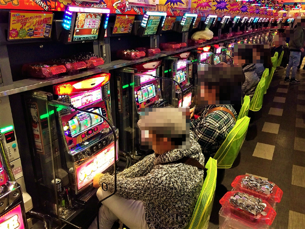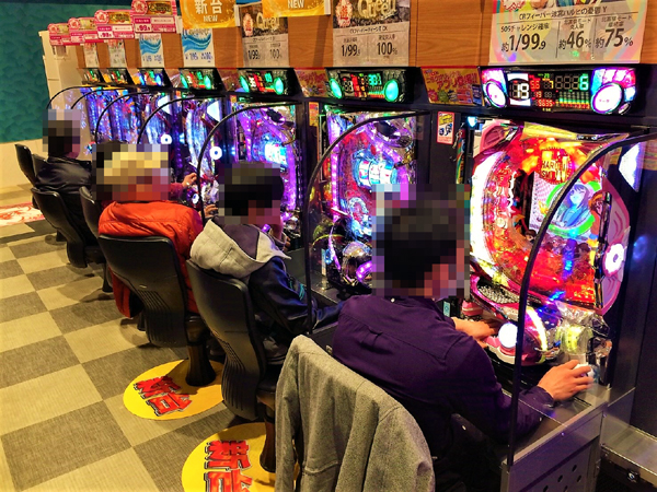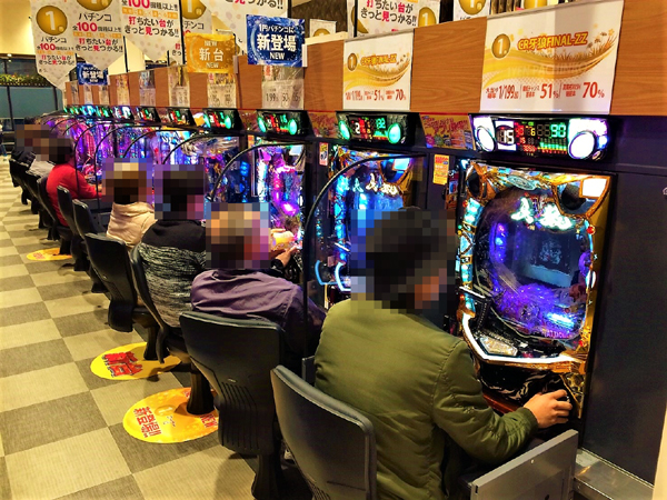 1円パチンコは年配層プレイヤーの支持を集め、和やかな雰囲気に包まれていた。