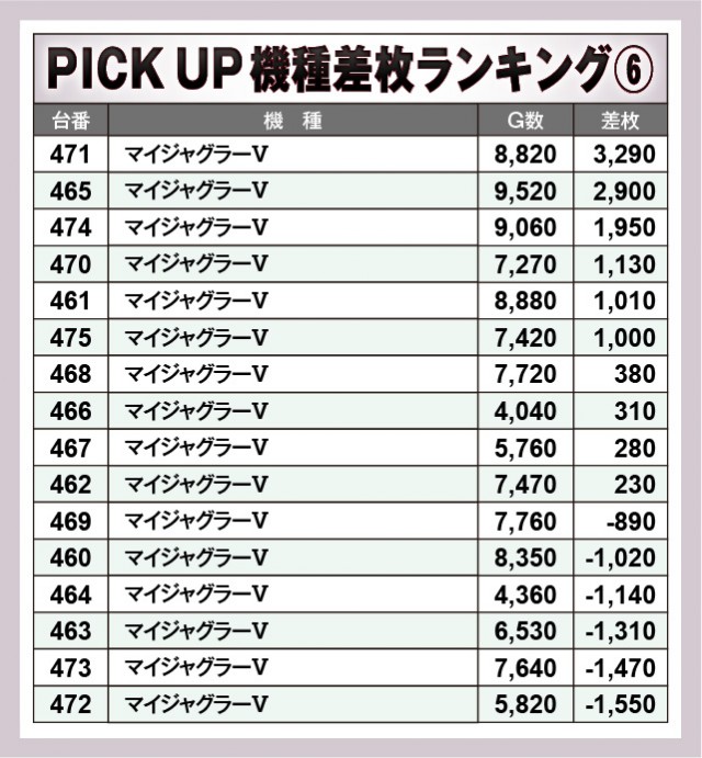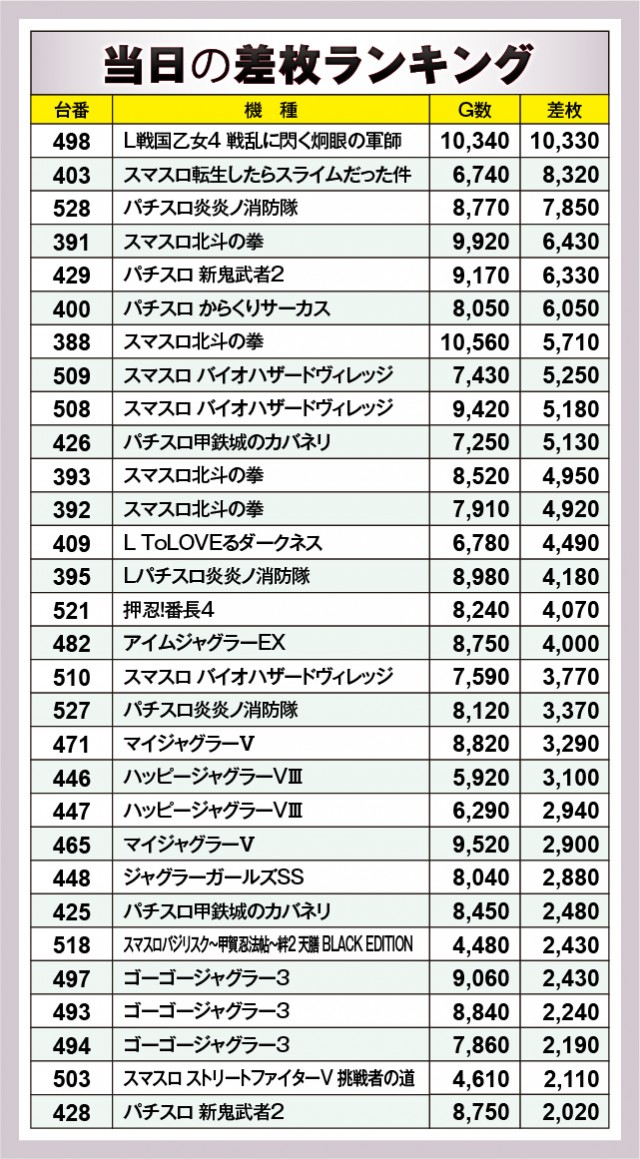※差枚数順に掲載しています。