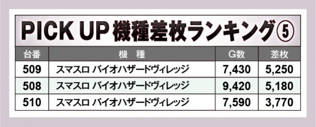 当日は優秀機種が高いパフォーマンスを披露しており、ファンは有意義な時間を過ごしていたはずだ。『スマスロ北斗の拳』『押忍!番長ZERO』『パチスロ甲鉄城のカバネリ』『パチスロ 新鬼武者2』『スマスロ バイオハザードヴィレッジ』は全台プラス差枚数を達成しており、回転数から見てもポテンシャルを秘めていたことが分かる。『マイジャグラーⅤ』も大きなマイナスが見られず、ファンが心を躍らせていたのは間違いない。