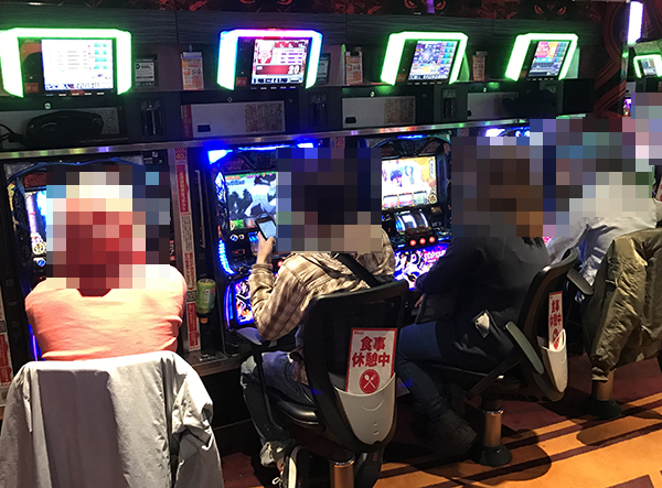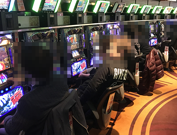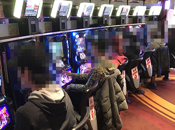 高稼働の1円パチンコにも、笑顔が多い。プレイヤーたちはパチンコの醍醐味をじっくりと味わえていたことだろう。