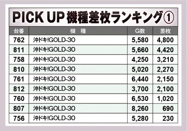 『沖ドキ!GOLD-30』は看板機種らしく、しっかりと盛り上がっていたと言える。ファンの期待も背負ってか、2台の4,000枚OVERと結果を残しているのが鮮烈だ。また回転数を見ても、彼らが手応えを感じていたのは確かだろう。大量設置された人気機種であるため、今後も同機種の動向からは目が離せそうにない。