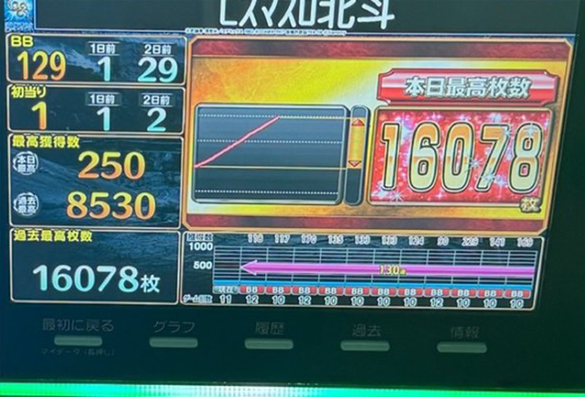 15時頃に16,000ptを超えている台があったのが、「スマスロ北斗の拳」!