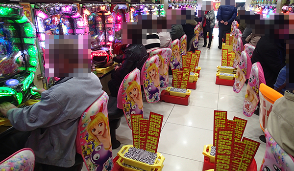 この日もたくさんのプレイヤーが遊技を楽しんでおり、パチンコ・パチスロともに活気づいていた。