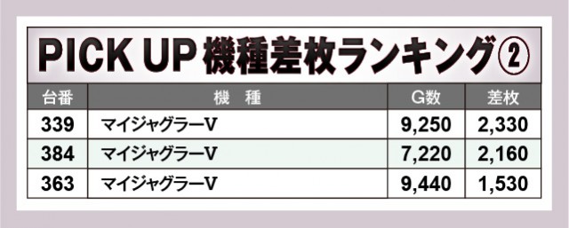 上表の優秀機種に目を通すと、『ジャグラー』シリーズの活躍が何よりも目に焼きつく。いずれもじっくりと打ち込まれており、コンスタントに2~3,000枚OVERを生んでいるのは、相応のポテンシャルを秘めていたからだろう。