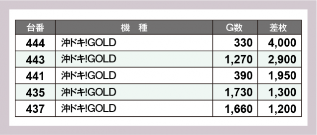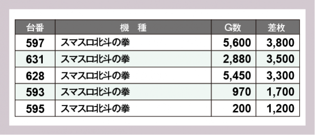 ※差枚数順に掲載しています