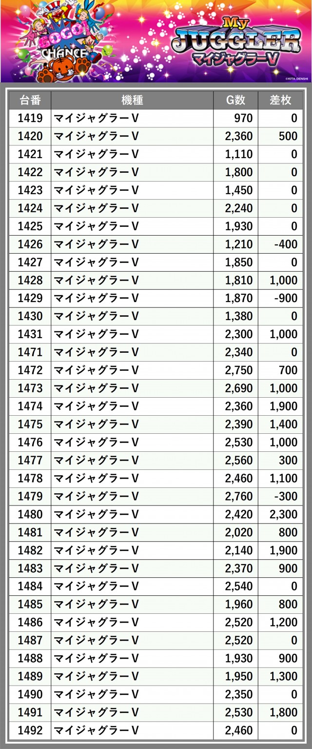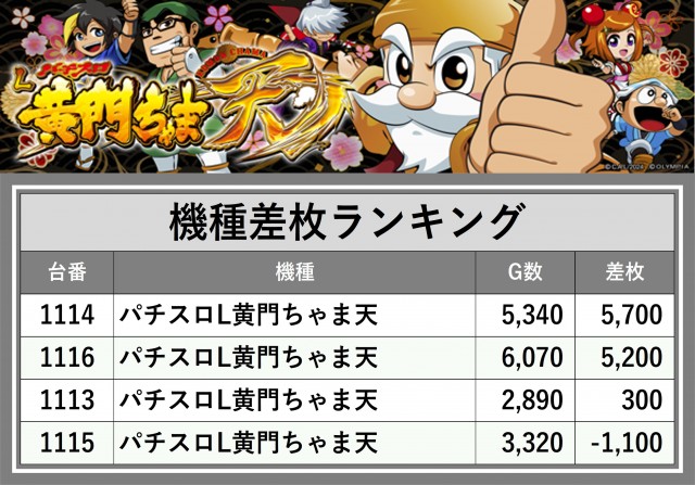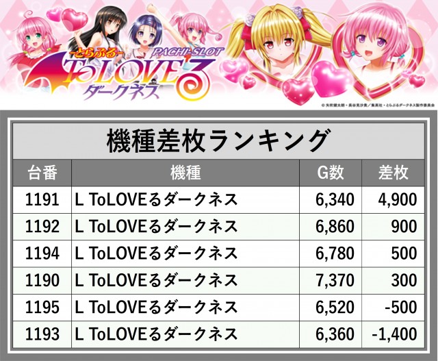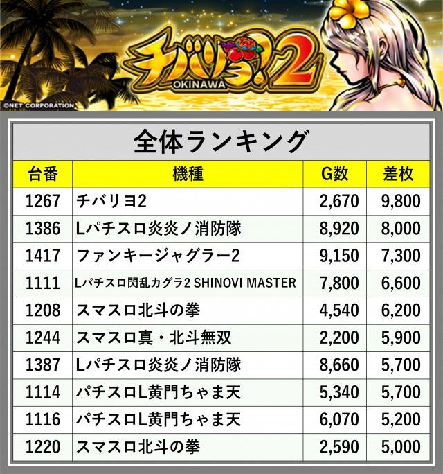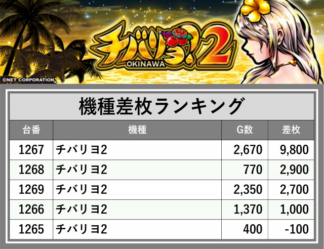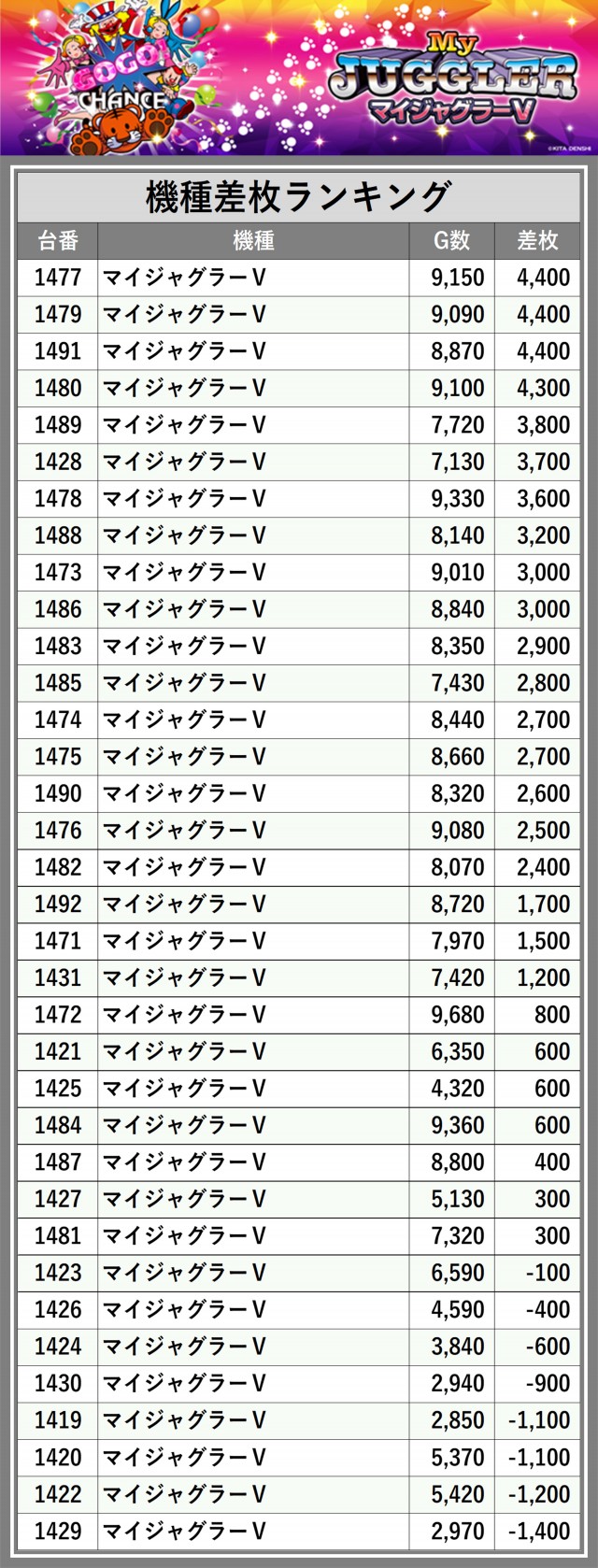 ※差枚数順に掲載しています