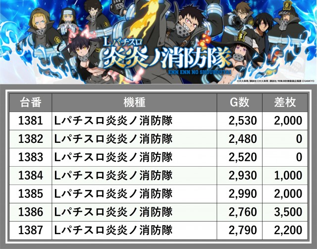 ※台番順に掲載しています