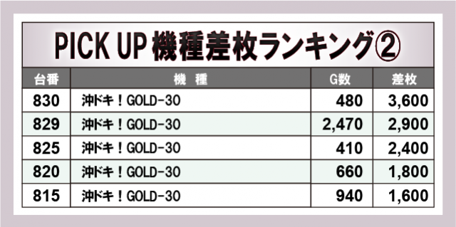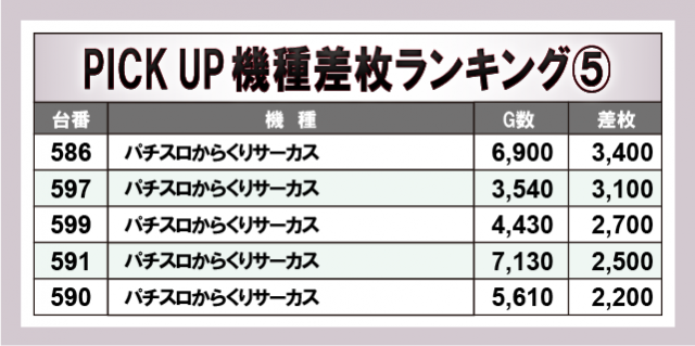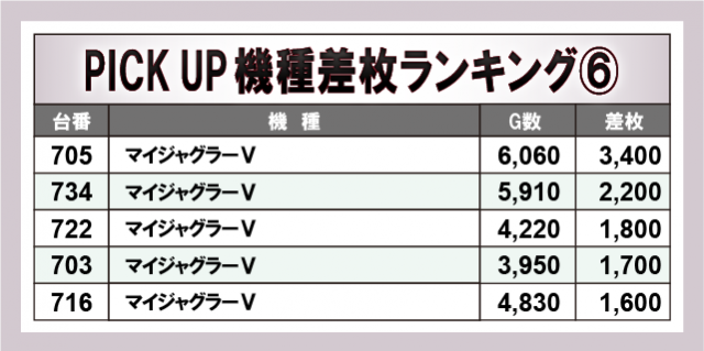 上表の6機種から大台突破台を筆頭に4桁プラス台が多数発生し、大きく盛り上がっていた様子でファンが自信をもってレバーを叩いていた様子が目に浮かぶ。いずれも同店が丁寧に扱っていると窺うことができ、今後も要注目のエリアなのは間違いないだろう。