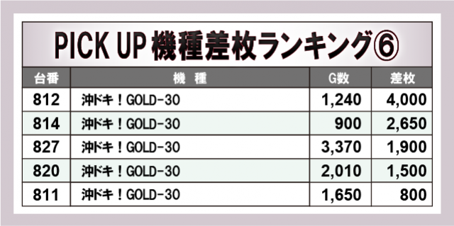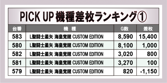 上表の6機種はいずれも安定感のあるパフォーマンスを披露していたと窺える。万枚OVERを達成した『L聖闘士星矢 海皇覚醒 CUSTOM EDITION』『スマスロ北斗の拳』を筆頭に6.5号機不動の人気機種『パチスロ甲鉄城のカバネリ』『沖ドキ!GOLD-30』など、スマスロ機からメダル機まで打ちごたえのある状況が整っていた様子から、館内の盛り上がりに大きく貢献していたと言えるだろう。