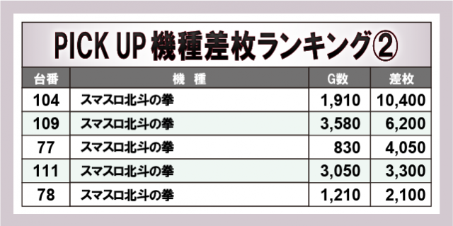 ※差枚数順に掲載しています。