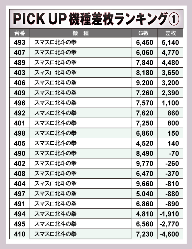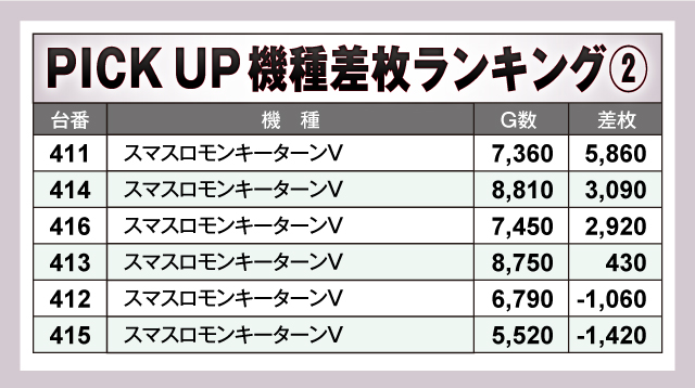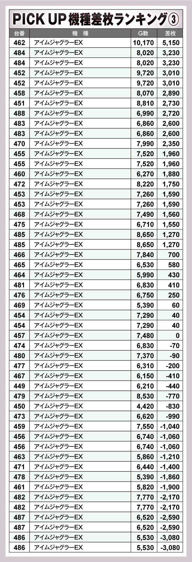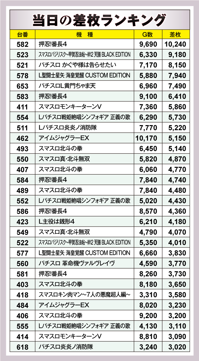 ※差枚数順に掲載しています。