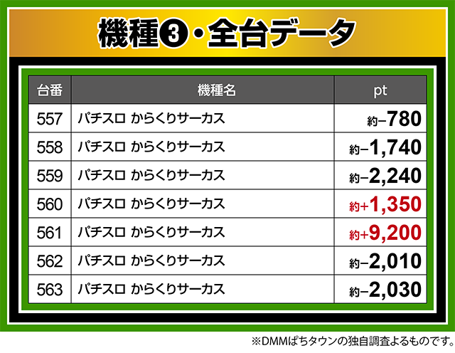『パチスロ からくりサーカス』は、561番台が約+9,200pt!