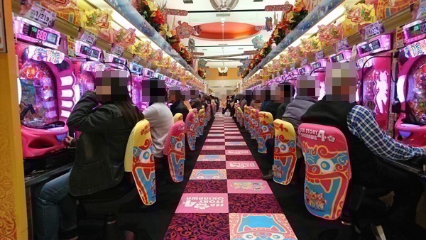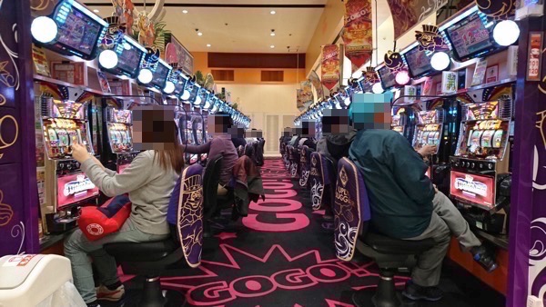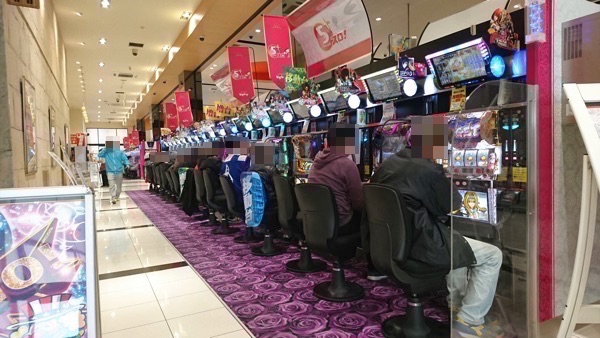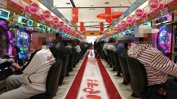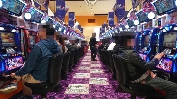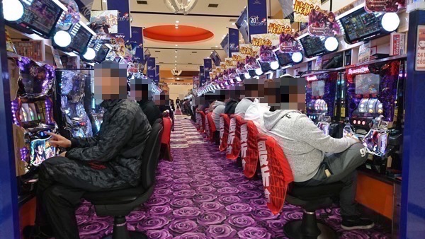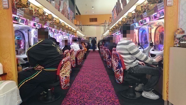 100円/90玉パチンコでは、ほとんど空き台が見当たらないほどの盛況ぶりとなっていた。じっくりと遊ぶことのできる低貸しの魅力を存分に味わえている様子であった。