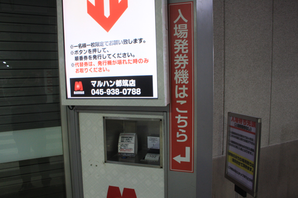 朝の入場方法は入口前に設置された入場発券機から受け取れる券の番号順となっており、この日は8時30分の時点で100番を超えていた。ちなみに、入場発券機は前日の閉店後、準備ができ次第利用できるようだ。