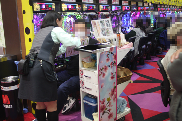 ドリンクやタバコなどをその場で交換できるカート販売も魅力的。そのほかにも、ホール内に設置されたカフェなどサービス面も充実しており、居心地の良さも抜群であった。