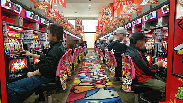この日も大勢のプレイヤーが来店しており、パチンコとパチスロの各シマは笑顔に満ちていた。