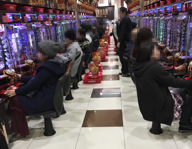 活気の感じられた4円パチンココーナーでは、特に「ぱちんこCR真・北斗無双」が空き台を探すのに苦労するほどの盛況ぶりをみせ、多くのプレイヤーが笑顔で遊技をおこなっていた。