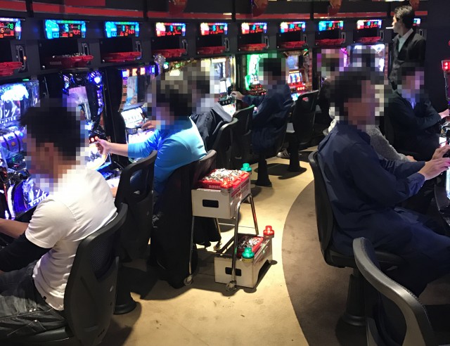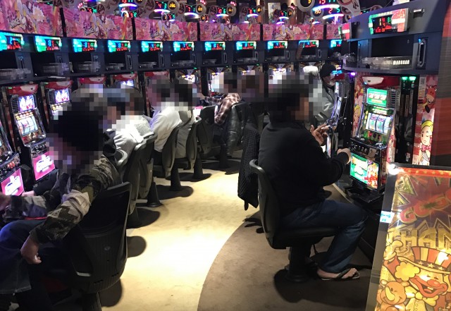 年代を問わず人気の高い「ジャグラーガールズ」や「マイジャグラーⅡ」では、多くのプレイヤーの笑顔あふれる雰囲気が全体を包み、みな一応に満足気な表情を浮かべていた。